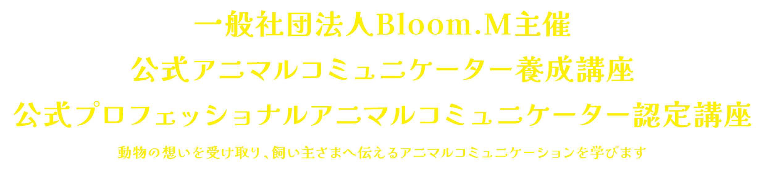 「好き」を仕事に、そして生きがいに 動物が好き。 動物と関わる仕事がしたい。 動物と人をつなげたい。 そんなあなたの「好き」を、 仕事に、そしてライフワークへとつなげていきます。 公式アニマルコミュニケーター養成講座を修了後は、 「アニマルコミュニケーター」として活動できるようになります。 さらに、公式プロフェッショナルアニマルコミュニケーター認定講座を修了すると、 講師として活躍する道も開かれます。