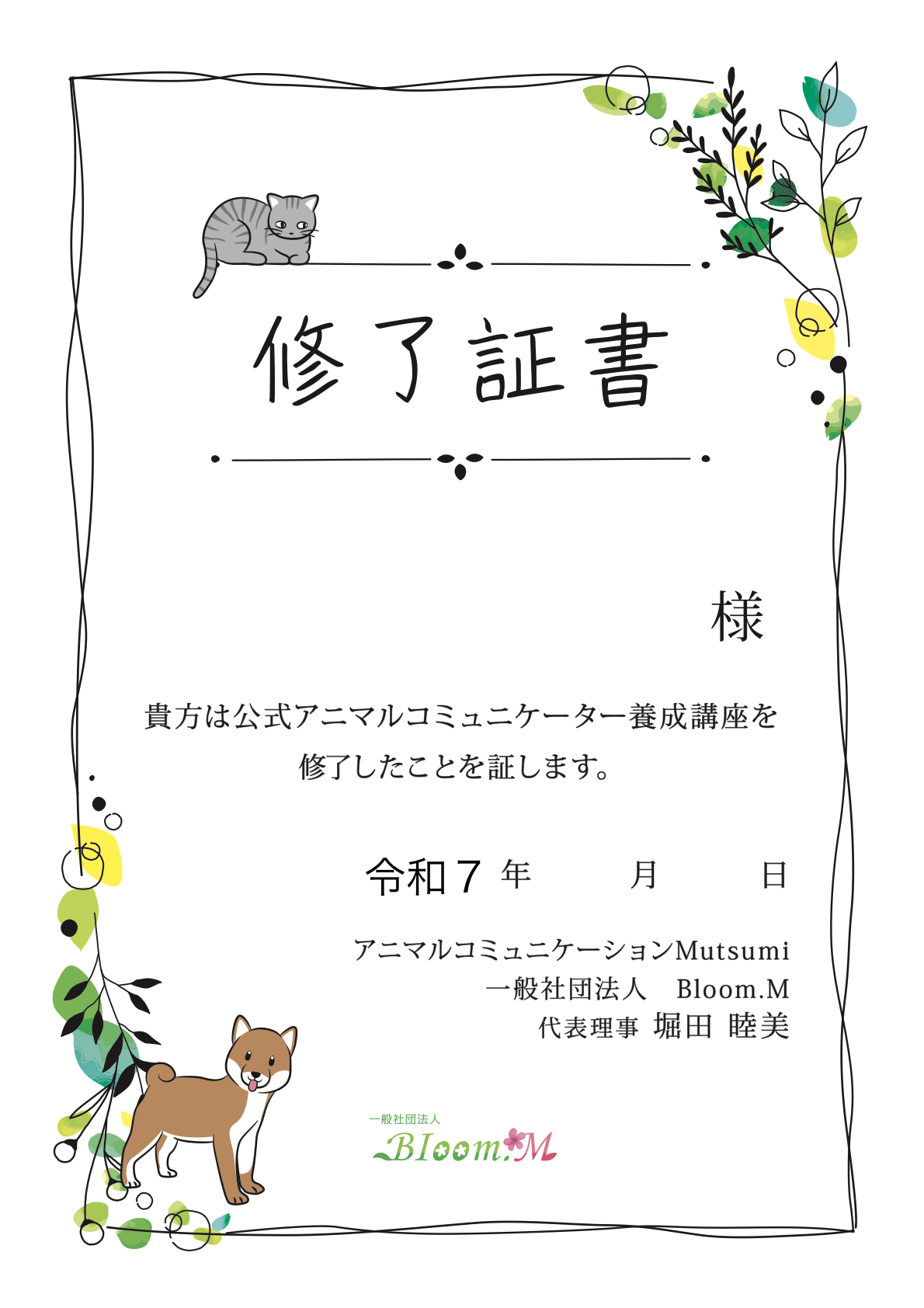 アニマルコミュニケーションの技術習得にとどまらず、「人に伝える」「育てる」「仕事として形にしていく」ための知識を学べる内容となっており、プロフェッショナルとして活動を広げていきたい方に適した講座です。